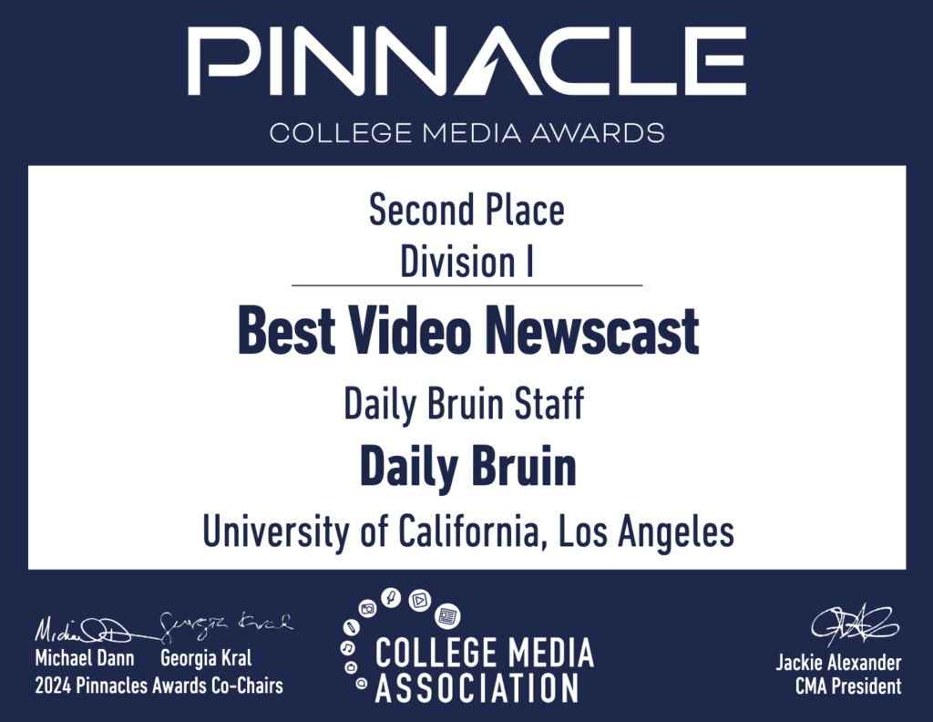 WINNER – Second Place, College Media Awards (CMA) Pinnacle 2024 – Best Video Newscast, Division 1